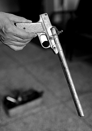 他介紹,平時(shí)公安收繳的槍械都保存在一個(gè)封閉的庫房內(nèi)。在為幾名記者展示收繳的非法槍支時(shí),一公安領(lǐng)導(dǎo)在擺弄一支自制火藥槍時(shí),槍支意外走火,“鐵砂子”擊中地面反彈后,傷及到了在現(xiàn)場拍照的3名記者。