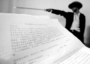 昨日上午,張謙卑拿著這紙協議來到本報,說出了自己的苦悶。他說,2007年8月28日,他和網友“自由魚”李×見面并相戀,因為張謙卑一直懷疑李×不是處女,還多次側面通過QQ試探到李×似乎有其他男人,所以心結遲遲未解開!八拗兄Z沒有,但我還是不死心,我們因為這還曾經分手過一段時間。”張謙卑說,今年5月份他們復合了,但是他心里仍有陰影,于是昨日自己草擬了一份“咒死協定”!拔乙呀浐退岩馑急磉_了,她同意簽字!睆堉t卑說。