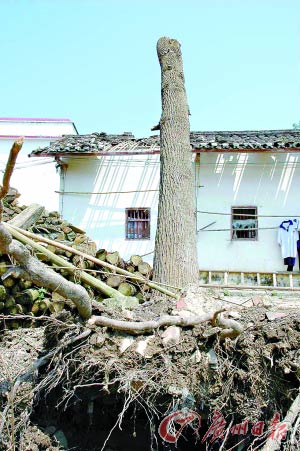 昨日上午,記者先后在隆街鎮(zhèn)立新村和古石村看到,當(dāng)?shù)乇姸嘞呏窳直豢耧L(fēng)吹倒,沿途隨處可見被狂風(fēng)吹倒折斷的大樹,碗口般粗的大樹有的橫在路中,有的“飛”到農(nóng)戶的屋頂上,受災(zāi)嚴(yán)重的鄉(xiāng)村遍地是瓦礫,數(shù)百間民房不見了屋頂。