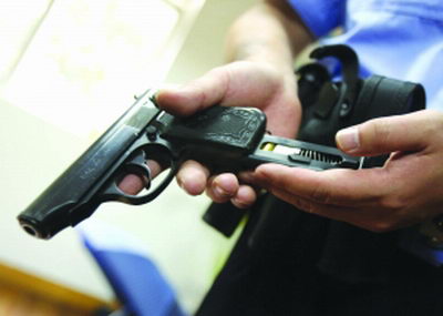 六四式手槍、子彈、辣椒水、手銬、警棍、強光電筒……民警們很仔細地檢查著腰帶上的警用器械,特別是手槍,他們進行了更為仔細的檢查,以便確保扳機放在了保險上。