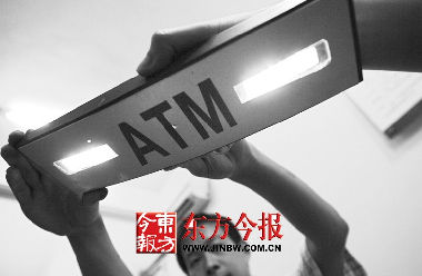 取款機(jī)是個(gè)內(nèi)陷型的窗口,周某等人在窗口內(nèi)側(cè)頂部,粘上了一個(gè)貼著“ATM”字樣的“發(fā)光燈”。這個(gè)“發(fā)光燈”是經(jīng)過(guò)特殊改造的,里面用一塊手機(jī)電池做電源,連接著兩個(gè)燈泡,核心部分則是一個(gè)MP4。取款人取款時(shí)的全過(guò)程于是被犯罪分子裝的“針孔攝像機(jī)”進(jìn)行了“實(shí)況錄像”。