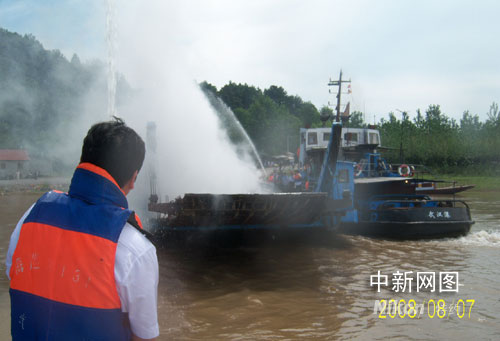 中新網(wǎng)武漢8月7日電 (費? 石博宇 徐金波)為提高人民群眾反恐和水上安全意識,確保奧運期間轄區(qū)安全,武漢海事局咸寧海事處會同長航公安局嘉魚派出所、赤壁市赤壁鎮(zhèn)派出所、洪湖市烏林鎮(zhèn)派出所和洪湖金迪汽車渡運有限公司等單位,在北京奧運會開幕前夕組織開展了“二地五方”水上反恐、消防聯(lián)合應(yīng)急演習(xí)。