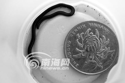 海南萬寧后安鎮(zhèn)何先生18日早晨9點(diǎn)在自家后院抓到一條只有一根牙簽大小的類似蛇的生物(右圖),何先生對(duì)照本報(bào)曾經(jīng)報(bào)道過的重慶發(fā)現(xiàn)“世界最小的蛇”的文章后稱,他發(fā)現(xiàn)的生物才是真正的“世界最小”。小生物通體黑色,長(zhǎng)約6厘米。何先生告訴記者,他小時(shí)候也曾經(jīng)見到過這種生物,在海南鄉(xiāng)村、墻角、衛(wèi)生間等潮濕的地方就會(huì)碰到這種小生物。但具體這是哪種生物,學(xué)名怎么稱呼,到底有沒有毒,何先生稱不甚了解。(南國(guó)都市報(bào) 記者李域攝影報(bào)道)