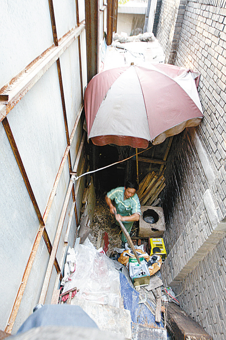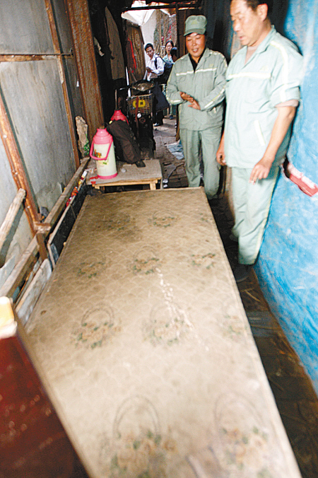 “大雁塔南面的雁塔南路,一個巨幅廣告牌后面有個長方形棚子,我鉆進去后發(fā)現(xiàn),里面是一個臨時搭起的窩棚,是保潔員搭的,他們只是想在遇到下雨下雪時,有個避雨雪的地方。他們說很羨慕有些街道有保潔員道班,可他們這兒沒有,只好自己想辦法找一處避風雨的地方!弊蛉,一位名叫“秦時明月”的網友在西安一家網站發(fā)布的帖子引起了記者的注意,從所附的5張照片上可看到,這個搭在廣告牌后面的小窩棚內,鍋碗瓢盆俱全,還有床鋪,這個簡陋的小窩成了保潔員臨時的“家”。這位網友說拍到這組照片后心里發(fā)酸,在繁華都市的背后生活著這樣一群“城市美容師”,靠著堅毅和吃苦,頑強地撐起全家的重擔。