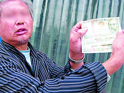 17日,記者在振華路見到了被騙走6000元的譚老先生。他告訴記者,17日下午1時左右,他在滄口廣場附近收廢品,突然有兩個20多歲的年輕人與他搭訕。這兩個年輕人自稱來自福建,與老板三個人一起來青島出差。到青島后,他們的車出了車禍,老板已經(jīng)被送到了醫(yī)院,急需交住院費,但是無奈身上只帶了一些外匯,來不及去銀行兌換,所以想跟譚先生兌換6000元錢。其中一個年輕人拿出5張外匯,每張外匯上標(biāo)有“1000”的字樣,并告訴譚先生,這5張1000元的英鎊值1萬多元人民幣。譚先生覺得很劃算,于是從家里拿了6000元錢與對方兌換。