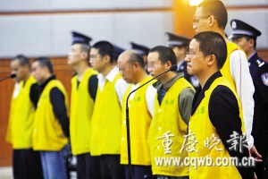 能容納百多人的九龍坡區(qū)法院1法庭座無(wú)虛席。該院派出刑事審判庭副庭長(zhǎng)賈飛任審判長(zhǎng),四名武警把守法庭大門,維持現(xiàn)場(chǎng)秩序。