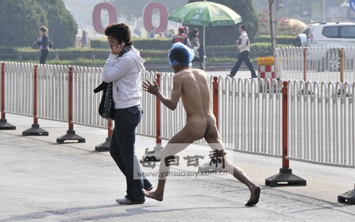 10月21日上午10時(shí)28分,在(蘭州)東方紅廣場至廣場西口一帶,一名30多歲渾身赤裸的瘋癲男子一會追逐過往行人,一會追逐駛過的車輛,一名年輕女子在遭其騷擾后嚇得失聲大哭。直到上午11時(shí)許,廣武門派出所民警接警趕到現(xiàn)場后,這一出鬧劇才得以收場。
