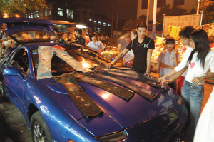 在梧慈路夜市一條街中段,一輛藍(lán)色三菱跑車(chē)支起后備廂充當(dāng)攤架的流動(dòng)攤點(diǎn)顯得格外起眼。跑車(chē)前方引擎蓋、擋風(fēng)玻璃上攤放著各種式樣的女式牛仔褲,跑車(chē)內(nèi)的座椅充當(dāng)臨時(shí)“貨倉(cāng)”,放滿了不同碼號(hào)的牛仔褲,代車(chē)主照看攤點(diǎn)的年青女售貨員不時(shí)大聲吆喝:“新款牛仔褲,60塊一條!