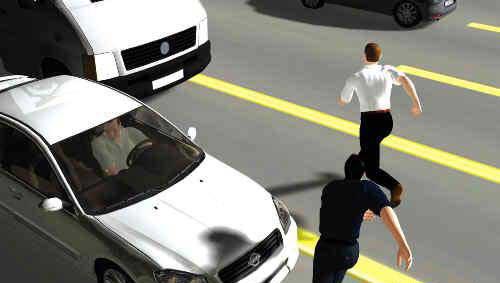 據(jù)轎車司機(jī)馮先生稱,當(dāng)時(shí)他正行駛在靠中間綠化帶的小客車車道上!爱(dāng)時(shí)車輛很多,我開得并不快。突然,車輛左前方跑過一名拿著警棍的男子,我緊急剎車還是把他撞倒了,隨后一旁車道的一輛中型貨車剎車不及把他壓在車輪下!薄翱此袷窃谧汾s什么人,而且跑得很快,甩出來的警棍把我的車前窗擋風(fēng)玻璃都撞裂了。”馮先生說。