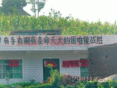 地震重災(zāi)區(qū)青川縣棗樹村的樸實(shí)莊稼漢,面對(duì)天災(zāi),他們?cè)瓌?chuàng)的兩條標(biāo)語“吼”出了精氣神,得到了溫家寶總理的贊譽(yù)。昨日,“出自己的力,流自己的汗,自己的事情自己干”、“有手有腳有條命,天大的困難能戰(zhàn)勝”這兩條標(biāo)語,由青川縣政府捐贈(zèng)給了地震文物指定征集單位——四川省文物考古研究院。據(jù)該研究院院長高大倫介紹,兩條標(biāo)語是該院收到的第一份災(zāi)后重建標(biāo)語文物,將被永久收藏于地震博物館。