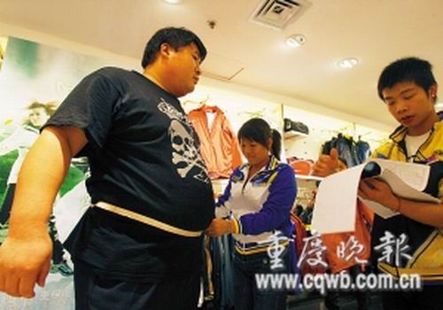 “別人的目光及肥胖帶來的不便,我已經(jīng)習慣,就是衣服問題成了我最頭疼的事!蓖踅苡魫灥卣f,他以前的衣服是在老家找裁縫定做的,來渝只帶了三套單衣褲,這幾天氣溫驟降,他連續(xù)跑了5天,足跡遍及主城各大商圈,但仍未買到一件合適衣服。而以前的秋冬,他都是將買來的特大號秋衣秋褲剪破穿在里面,“可現(xiàn)在我要幫老板跑業(yè)務,衣著太破爛不行。”