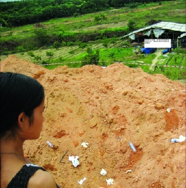 另外一件讓古女士感到懷疑的事情是,10月29日下午1時許,古女士發(fā)現(xiàn)婷婷失蹤,只有她的一雙鞋子被整整齊齊放在工地泥頭車傾倒的黃土邊。她心里涌起可怕的念頭:女兒被埋在土里了?她看到不遠處有一輛泥頭車停在那里。于是她上前詢問司機,有沒有看到她女兒,司機說沒有。古女士再次問當天有沒有推土機在這片地方碾壓過?司機回答沒有。