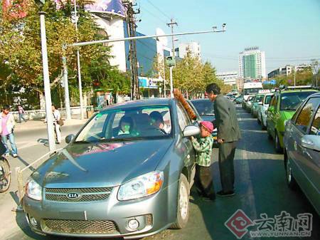 手拿雞毛撣子,見車停下等信號燈就趕忙上前掃車,當(dāng)車主打開車窗看究竟時,立馬伸進(jìn)一只手并索要清潔費,你要不給錢接下來還有一招——下跪。近日,守在昆明市各大路口的要錢族又出新花樣——拿雞毛撣子掃車窗,有人戲稱他們是掃灰族。