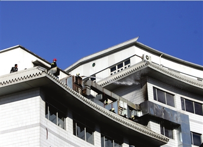 昨天上午9點40分,大廈院外仍停著數(shù)輛警車和消防車,保安阻止無關人員進入院內(nèi),百余人站在中天石酒店大堂和院子內(nèi),酒店大堂還有較重焦煳味。大廈一層中部一間屋子外墻被熏黑,現(xiàn)場已無明火。院內(nèi)垃圾站一員工稱,西客站郵件處理中心一層廚房著火,火苗竄出屋外并燒至煙道。