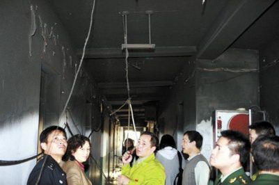 11月14日,上海商學(xué)院宿舍樓6層的大部分樓道被大火熏黑