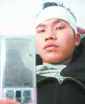 就在第二個電話打出不久,一名小偷抽出隨身攜帶的匕首,趁大家不備對準人群一陣亂舞,企圖掙脫眾人的圍困逃跑。由于事發(fā)突然,所有人均沒有警覺,致使現(xiàn)場抓捕小偷的吳偉、劉永強、李勇等6人受傷。居民阮三左手掌被刺穿,左手中指肌腱被挑斷;車主吳偉更是身中四刀,第四刀直插心臟,幸好手機裝在左胸上衣口袋內,刀尖在手機的金屬后蓋上刺出一個凹槽。