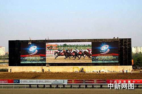 中新網(wǎng)武漢11月21日電 (劉鴻清 王一笑)顯示面積480平米、造價(jià)1400萬元人民幣的LED戶外電視顯示大屏,21日在武漢東方馬城國際賽馬場(chǎng)通過驗(yàn)收,眾多技術(shù)專家現(xiàn)場(chǎng)感受了LED大屏帶來的強(qiáng)大視覺沖擊。