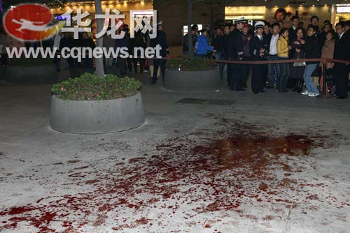 今晚(25日晚)9:10分左右,重慶市江北區(qū)北城天街(肯德基、遠(yuǎn)東百貨中間的廣場)發(fā)生一起慘案:一女子被一持刀男子,連砍數(shù)刀倒在血泊中,之后該男子舉刀自殘。