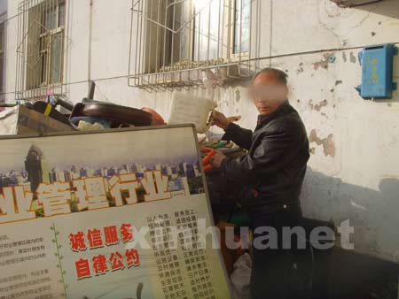 在4號樓一個單元入口處,一堆4米見方的雜物堆在整潔的小區(qū)內顯得有些突兀。物業(yè)人員說:“11月3日,一群人趁物業(yè)辦公室沒有人,直接將鎖砸開,把這些辦公用品全搬出來了,F(xiàn)在里面還有個人在里面占著房子!