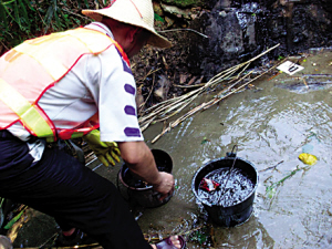 從肇事者的行駛證看,四人均來自深圳某清潔公司。該公司專門收集企業(yè)無法處理的工業(yè)廢水,選擇周末用油罐車運(yùn)到高速公路監(jiān)控盲區(qū)排放,可見是有預(yù)謀有策劃的行為。據(jù)交警介紹,發(fā)現(xiàn)時(shí),只有一輛車在排放廢水,另外一輛還沒來得及排放,暫未查明裝載的是不是廢水。“假如兩部油罐車都裝載著廢水的話,總共可達(dá)4噸”。