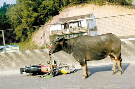 在車來車往的街道為何突然冒出一頭水牛?水牛被擊斃后被拖到警方停車場內(nèi),等待水牛的主人來認領(lǐng),可是一直沒有出現(xiàn),這頭水牛如何跑到街上亦不得而知。被牛頂傷的市民的損失也不知道向誰索賠。(記者黃禮琪)