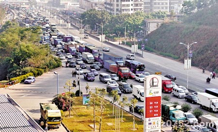 水牛擋道導致大堵車 施多多 攝