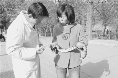 武漢動物園獸醫(yī)院院長汪明權(quán)介紹,蟒蛇是漢口居民郭女士前日在球場路附近撿到的,長約1米,為熱帶蟒蛇,屬國家一級保護(hù)動物。