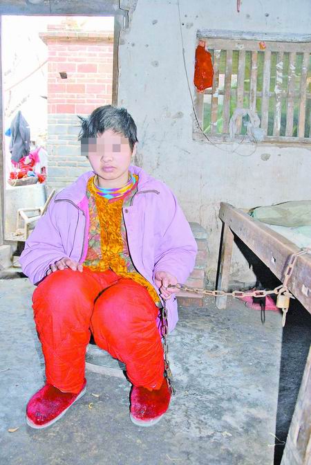 南陽市新野縣沙堰鎮(zhèn)南村二組患病的19歲少女馬健迪犯病時見人打人,見狗殺狗,難以控制。犯病少女曾毆打過附近村民及兒童100多人,殺死貓狗10多只,家人怕她再生事端,無奈之下買來拴狗鐵鏈,整日將其拴在臥室的床頭。