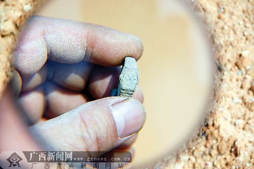 在上思縣前段時(shí)間出土的“三合土”巨棺的墓坑邊,居然出現(xiàn)一只“手表”。12月11日,相關(guān)考古專家和中央電視臺(tái)記者來到巨棺出土現(xiàn)場(chǎng)考察時(shí),發(fā)現(xiàn)了這樣令人驚訝的事情。