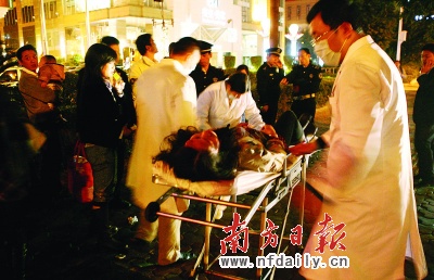 救護人員趕到現(xiàn)場將懷有身孕的婦女轉(zhuǎn)往醫(yī)院。楊曦攝