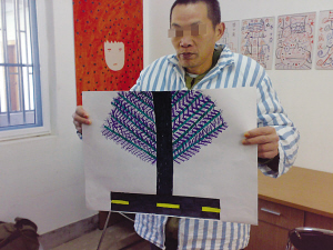 兩年前的圣誕節(jié)之際,南京祖堂山精神病院的一群精神病人,在當(dāng)代藝術(shù)家郭海平為期三個(gè)月的精神病人藝術(shù)實(shí)驗(yàn)項(xiàng)目的“發(fā)掘”下浮出水面,他們中有人的作品被藝術(shù)界譽(yù)為“梵高般的杰作”,并在2007年11月于北京798藝術(shù)區(qū)展出時(shí)引起了轟動(dòng)。但在那個(gè)短期實(shí)驗(yàn)項(xiàng)目結(jié)束后,這些精神病人藝術(shù)家又回復(fù)他們的常態(tài),再無(wú)緣接觸畫(huà)筆。變化,在兩年后的今天出現(xiàn)了……