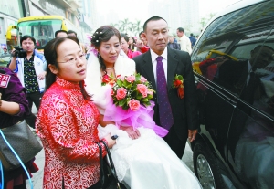 而他與成都女子劉如蓉結(jié)識9日后于11月18日登記結(jié)婚。由于劉如蓉在深圳南山打工,南山區(qū)婦聯(lián)經(jīng)過多方聯(lián)系,邀請他們參加此次來深建設(shè)者的婚禮,并免掉了全部費用。