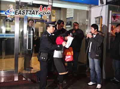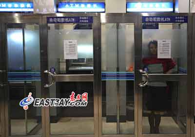 記者于昨天傍晚趕到事發(fā)的自助銀行看到,兩名料理店店員仍舊守候在大門(mén)口,而女子則背對(duì)他們站在A(yíng)TM機(jī)前不肯回頭。期間曾有人拍打防護(hù)門(mén)請(qǐng)她走出,但女子并未理睬。店員表示,他們也曾勸她出來(lái),但女子始終拒絕,并稱(chēng)身上帶有一把很鋒利的瑞士軍刀,不讓他們靠近。
