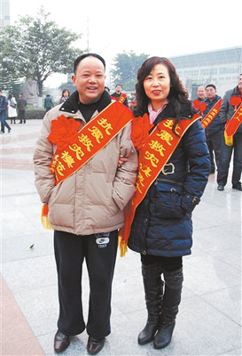 在什邡市政府研究室副主任廖曉軍的相機(jī)里,有一張劉慶祿夫妻披著抗震救災(zāi)模范綬帶的照片。廖曉軍說(shuō),去年12月30日,市委、市政府召開(kāi)抗震救災(zāi)表彰大會(huì),辦公室通知?jiǎng)c祿參會(huì)時(shí),他說(shuō)自己正在值班,要去幾個(gè)受災(zāi)鎮(zhèn)發(fā)放過(guò)冬物資,就不參加了。因?yàn)樗鳛槟7秱(gè)人代表不能缺席,于是就一再通知他務(wù)必到會(huì)。最后,他來(lái)不及回家換件衣服,就直接從倉(cāng)庫(kù)趕到大會(huì)現(xiàn)場(chǎng)。也在這里,留下了生前最后的影像,也是和妻子的最后合影。