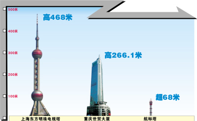 長(zhǎng)江重慶航道局人士稱(chēng),目前,國(guó)內(nèi)已建成的內(nèi)河最高塔在揚(yáng)州,高66.9米。建這個(gè)塔的首要目的是導(dǎo)航,因?yàn)槿龒{水位上漲后,目前庫(kù)區(qū)最高的導(dǎo)航塔只有15米,已不能適應(yīng)導(dǎo)航之需。在重慶兩江交匯處建設(shè)超68米的高塔,可滿(mǎn)足江面導(dǎo)航需要,不是為了追求形象。