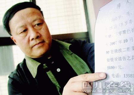 劉先生說,2008年8月中旬,他在雙流馬家寺附近吃飯時,聽隔壁桌在談?wù)摗斑@娃娃厲害,被拐8天又被人販子送了回來”,于是他找到該娃娃“小龍”(化名)的母親張洪英打聽情況,并將這一線索報告給成都多家媒體。經(jīng)媒體報道后,同樣丟失孩子的馮文全等人找到他,請他幫忙聯(lián)系小龍認照片,看能否通過小龍找到自己的孩子。同時,馮文全還拿了一張寫著“如有知情者請告知其家人,并重謝人民幣5萬元”的尋人啟事給他。之后,在他的安排下,馮文全等人找到張洪英,并依靠小龍的回憶,配合警方抓住了犯罪嫌疑人。