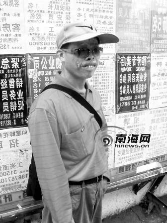 13日中午,南國都市報記者在三亞汽車總站附近見到吳國友。他戴著一頂帽子,帽檐下一副墨鏡,透過墨鏡依稀可見那雙畸形的眼睛。他走到哪兒都帶著一副墨鏡,因為他怕那雙被燒傷的眼睛嚇到別人。