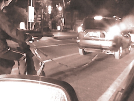 西祠網(wǎng)友“南京市心理危機(jī)干預(yù)中心”告訴記者,26日深夜23:48,他駕車回家路過(guò)南京市長(zhǎng)江路文化藝術(shù)中心附近的時(shí)候,就看到那輛“超級(jí)暴強(qiáng)”的電動(dòng)自行車,一位年輕美麗的女子騎著這輛電動(dòng)自行車,可能是這輛電動(dòng)自行車沒(méi)電了,所以不得不借力而行,以一根繩子與前面一輛寶馬越野車相連,在快車道上被拖拉著快速前行。駕駛寶馬車的是一位先生,寶馬車?yán)妱?dòng)車一路行駛,過(guò)路的司機(jī)看得心拎拎的,紛紛駕車避讓,而電動(dòng)車上的那位女子似乎膽子頗大,不僅沒(méi)有害怕的感覺(jué),臉上還笑嘻嘻的,真讓人佩服。