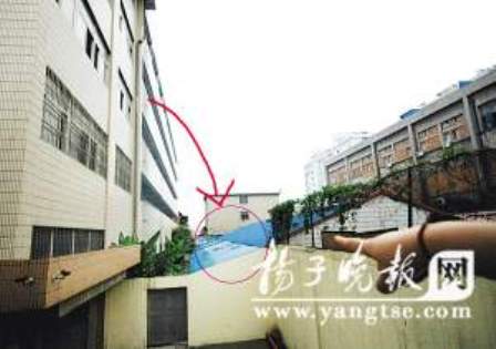 昨天上午9點(diǎn)多,記者接到報(bào)料后趕到現(xiàn)場(chǎng),當(dāng)時(shí)距離該名男生跳樓還不足半小時(shí),受傷男生已被送到南京中大醫(yī)院搶救。據(jù)一位目擊該男生跳樓后情形的學(xué)校負(fù)責(zé)人介紹,當(dāng)時(shí)他正在二樓辦公室看報(bào)紙,只聽見窗外“哐”的一聲響,抬頭一看,竟然看到一名男生砸在附近廠房的彩鋼瓦頂上,將彩鋼瓦頂砸出了一個(gè)大窟窿。所幸該男生沒掉到窟窿里去,人還趴在屋頂上,他似乎還有意識(shí),本能地向屋頂上方挪動(dòng)了幾下身體,這位目擊者還有附近樓上居民看到這情形,還叫那男生“別動(dòng)別動(dòng)……馬上叫人來救你!”那男生隨后就抓住了廠房屋頂?shù)囊桓鶛M梁,就沒再動(dòng)彈了!皬乃菚r(shí)候的表情看,肯定摔得不輕,連喊救命的力氣都沒了,當(dāng)時(shí)替他捏了把汗,能保命是關(guān)鍵啊!