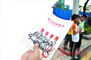 “六一”節(jié)即將來臨,在順德大良東區(qū)居住的梁女士,準(zhǔn)備為自己讀三年級的兒子買一套全新的文具,翻開兒子的書包,卻意外發(fā)現(xiàn)里面有幾本“歪語錄”筆記本,上面大大個字寫著“為人民幣服務(wù)”、“提高警惕,保衛(wèi)老婆”(見上圖)。
