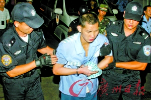 杜秋發(fā):沒有。過去我們從審訊他的同伙中知道成瑞龍雖然六親不認(rèn),但心里還是牽掛自己的兒子的,當(dāng)我們問他有什么要求時(shí),他回答說:“我最關(guān)心我仔,希望能見到他!蔽耶(dāng)時(shí)就說:“等回到佛山,他們會(huì)盡量安排你們見面的,而且我們看到你兒子了,長得很高大很帥。”他的情緒很快就恢復(fù)平靜,對殺害佛山民警案件供認(rèn)不諱,后來一路押解回來也很順利。