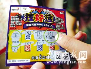 記者接到報料后,隨即來到了這家體彩銷售點,見到了那張“中獎”的“撞好運”彩票。該彩票名為“撞好運”,銷售價格為5元錢一張,一張彩票有8次中獎機會,其中左邊的中獎“好運牌”是“3”和“7”,而被人刮開的“你的牌”區(qū)域內確實也有個“3”字,對應的獎金是“10000元”,但只要仔細一辨認,就能發(fā)現(xiàn)后者“3”字是由“8”字刮破左邊弧形形成缺口而變成的。