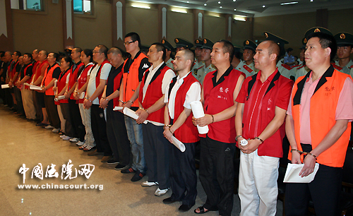 早晨8點(diǎn)左右,唐亞南等23名原審被告人由警車押送到庭,八點(diǎn)半左右,開(kāi)始開(kāi)庭審理。審判長(zhǎng)宣布開(kāi)庭后,唐亞南等23名原審被告人被帶入庭審現(xiàn)場(chǎng),站到法庭的被告席上。法官當(dāng)庭宣讀了一審判決書(shū),一審判決以集資詐騙罪判處原審被告人唐亞南死刑,剝奪政治權(quán)利終身,并處沒(méi)收個(gè)人全部財(cái)產(chǎn);以集資詐騙罪判處原審被告人丁魁元死刑,緩期二年執(zhí)行,剝奪政治權(quán)利終身,并處沒(méi)收個(gè)人全部財(cái)產(chǎn);以集資詐騙罪判處原審被告人李全才、鄧書(shū)杰、彭標(biāo)、李凱無(wú)期徒刑,剝奪政治權(quán)利終身,并處沒(méi)收個(gè)人全部財(cái)產(chǎn)。其他15名原審被告人分別以隱瞞犯罪所得罪、非法吸收公眾存款罪、集資詐騙罪被判處三年至十五年不等的有期徒刑;另兩名原審被告人被判非法吸收公眾存款罪,因情節(jié)輕微,免予刑事處罰。一審宣判后,唐亞南等19名原審被告人提出上訴。