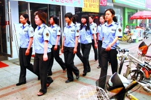昨日,(江蘇)連云港市東海縣女子城管隊(duì)員在縣城步行街巡邏。為充分發(fā)揮女性在城管執(zhí)法工作中特有的耐心、細(xì)心和善于溝通等特點(diǎn),著力打造城管行政執(zhí)法新亮點(diǎn),近日,連云港市東海縣成立了城管行政執(zhí)法大隊(duì)女子中隊(duì)。該女子中隊(duì)目前共有10名隊(duì)員,主要負(fù)責(zé)在中心城區(qū)主干道進(jìn)行城管巡查,通過(guò)女性特有的親和力和感染力,化解執(zhí)法過(guò)程中出現(xiàn)的矛盾。