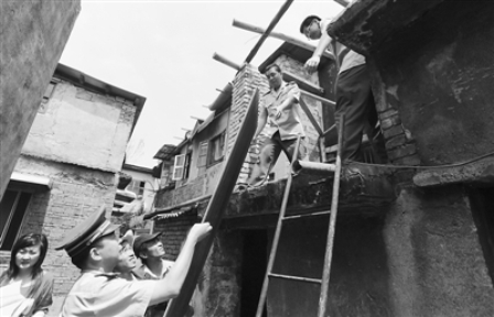 “這處違建不能一拆了之”,楊敏與隊員們商議,共同捐資2000元,買了磚石砂料。昨日,宗關(guān)街城管執(zhí)法中隊6名隊員來到現(xiàn)場,依法拆除違建的亭子間,同時運(yùn)砂砌磚,改造加固房體,修建隔雨層,不料被街坊鄰居舉報。