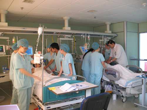 由于當時沒有合適的航班,在聯(lián)系到了北京急救中心的兩輛急救車后便立即奔赴內(nèi)蒙古。錫林浩特距北京約650公里,但想到傷者病情危重,醫(yī)護人員們不顧個人安危僅用5個多小時便趕往了當?shù)氐尼t(yī)院。這時的時間是已是7月26日晚8時。醫(yī)護人員們?nèi)徊活櫬吠緞诶郏硇牡赝度氲搅司戎蝹麊T的工作中去。經(jīng)過快速細致的檢查,醫(yī)護人員首先給幾名危重傷員進行手術(shù)治療,術(shù)后傷者傷情得到明顯改善。由于當?shù)蒯t(yī)院條件有限,在醫(yī)護設(shè)備無法滿足的情況下,有兩名重傷者必須盡快轉(zhuǎn)送到北京繼續(xù)治療,醫(yī)護人員們在安排好了當?shù)蒯t(yī)院的相關(guān)救治工作后,于7月26日凌晨護送2名傷員返京。