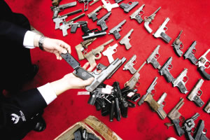 五六式?jīng)_鋒槍、唧筒式獵槍、德國造PP手槍、手雷……日前,一個頗具規(guī)模的非法槍支藏匿窩點被重慶警方一舉搗毀,多名犯罪嫌疑人被抓獲。包括這批槍支彈藥在內(nèi),重慶警方目前已收繳各類非法槍支700余支,爆炸物2萬多千克!皽鐦屩伪袆印弊坑谐尚。
