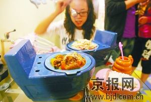 這家小店的創(chuàng)意來(lái)自國(guó)外。李女士表示,她從新聞上看到日本有“便便”餐廳后,立即對(duì)此產(chǎn)生了濃厚興趣,隨后開(kāi)始設(shè)計(jì)裝潢小店,并專(zhuān)門(mén)定制了全套“便式”餐具。作為京城第一家?guī)黝}餐廳,它受到了追逐潮流的年輕人的熱捧。李女士表示,現(xiàn)在每天客流都在百人以上。
