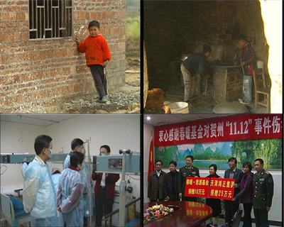 再來看看看這盤空炮筒,很難想像當(dāng)別的同齡人在學(xué)習(xí)和玩耍的時(shí)候,楊會(huì)村的十幾個(gè)小孩卻擠在楊萬文家的小屋子里,一個(gè)一個(gè)往爆竹上插引信。在經(jīng)濟(jì)不發(fā)達(dá)的賀州農(nóng)村,一天一塊多錢的工錢對幾歲十幾歲大的孩子來說挺有誘惑力的。不過,他們卻為此付出了血的代價(jià),F(xiàn)在爆炸事故中受傷的孩子分別被安置在賀州、桂林、南寧的三家醫(yī)院。他們的傷情如何?是否能度過危險(xiǎn)期?我們的記者趕到了桂林市181醫(yī)院。
