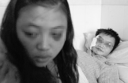 昨日下午,郫縣人民醫(yī)院外科病房?jī)?nèi),面容憔悴的吳慧明靜靜地躺在床上,他右耳處粘滿紗布,雙眼青紫腫脹。病床邊,左眼青紫紅腫的王英蘭,正輕輕地按摩著吳慧明剛剛打完點(diǎn)滴的左手背。四目相對(duì)間,滿是愛意。情侶間的溫馨一幕,令病友們感動(dòng)。但他們并不知道,幾天前吳慧明竟然遭遇了“似乎死過(guò)一次”的痛苦……